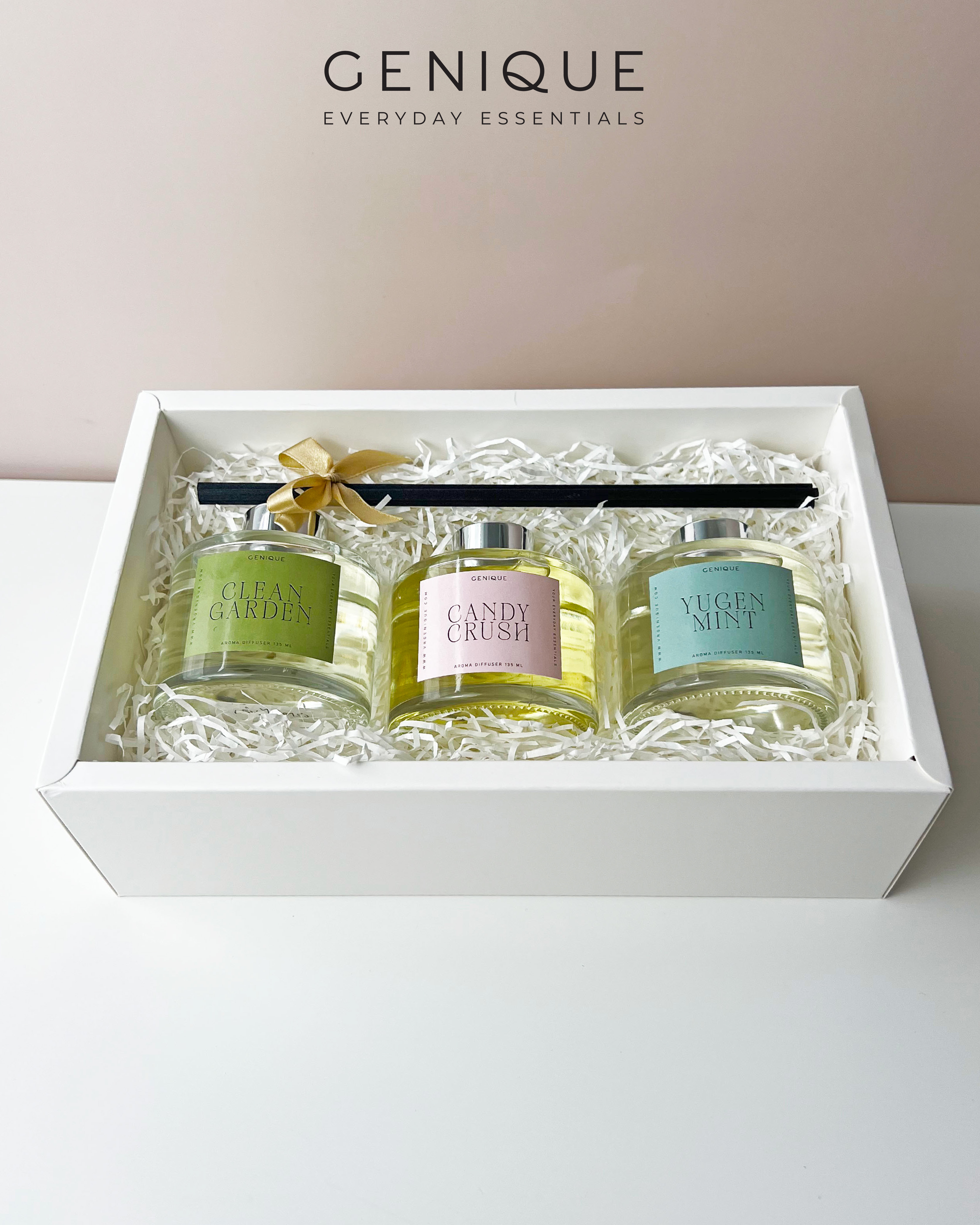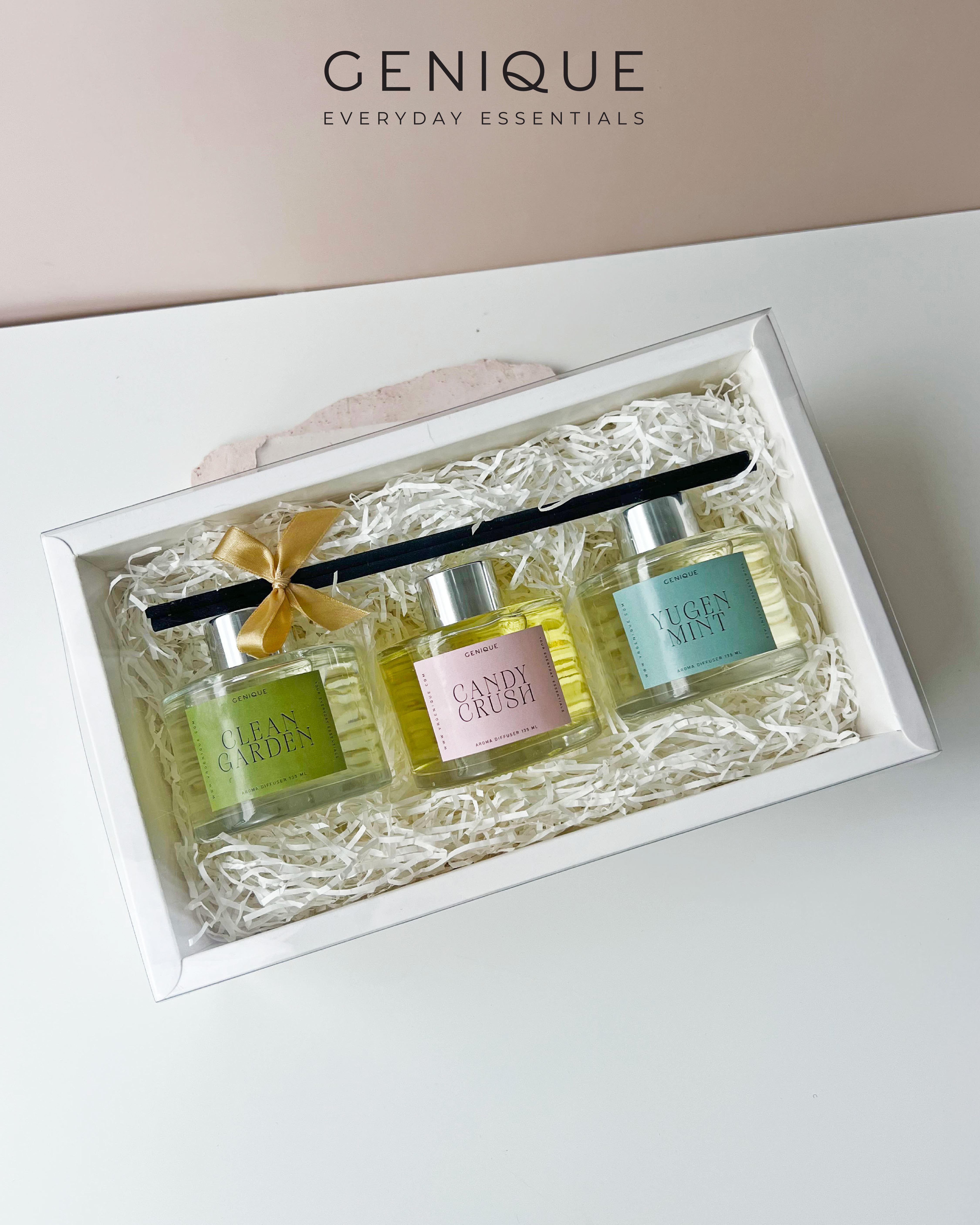 Genique พรีเมี่ยมเซท Giftset โฮมอโรมา Handcream+ เทียนหอม Crystal + Diffuser 135ml.